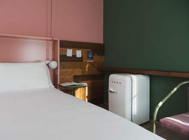 Some rooms may have separate beds, but we prefer to offer you a double mattress. In some we can add a single bed or a cot. Others aren't just a room, these are apartments. A Basic one is particularly suitable for disabled people. All of them have a bathroom, air conditioning or heating, a minibar, a safe and a smart TV. You can't smoke in any of them! There is also private parking for €8.